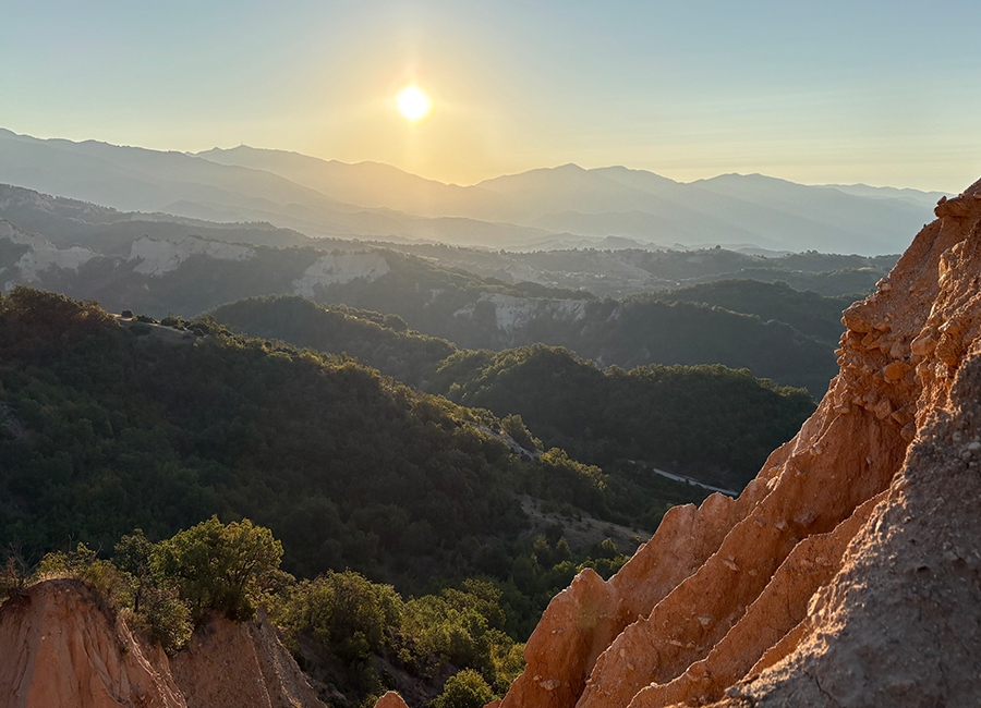 Wir verlassen Sofia Richtung Vitosha-Gebirge und besuchen im Rila-Gebirge das Bergkloster Rila. Weiter geht es durch die wilden Schluchten des Balkan auf den Spuren von Karl May (Pirin-Gebirge) in ein kleines Dörfchen in Südbulgarien. Ein idyllischer Ort mit ca. 250 Einwohnern. Wunderschön ist die Landschaft, der Ort ist von Sandsteinpyramiden umgeben. Besuch eines Klosters. Von dort aus zeigen sich die Pyramiden von ihrer schönsten Seite. Hausgemachter Wein und traditionelle bulgarische Küche lassen den Abend ausklingen.